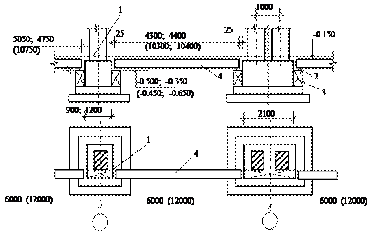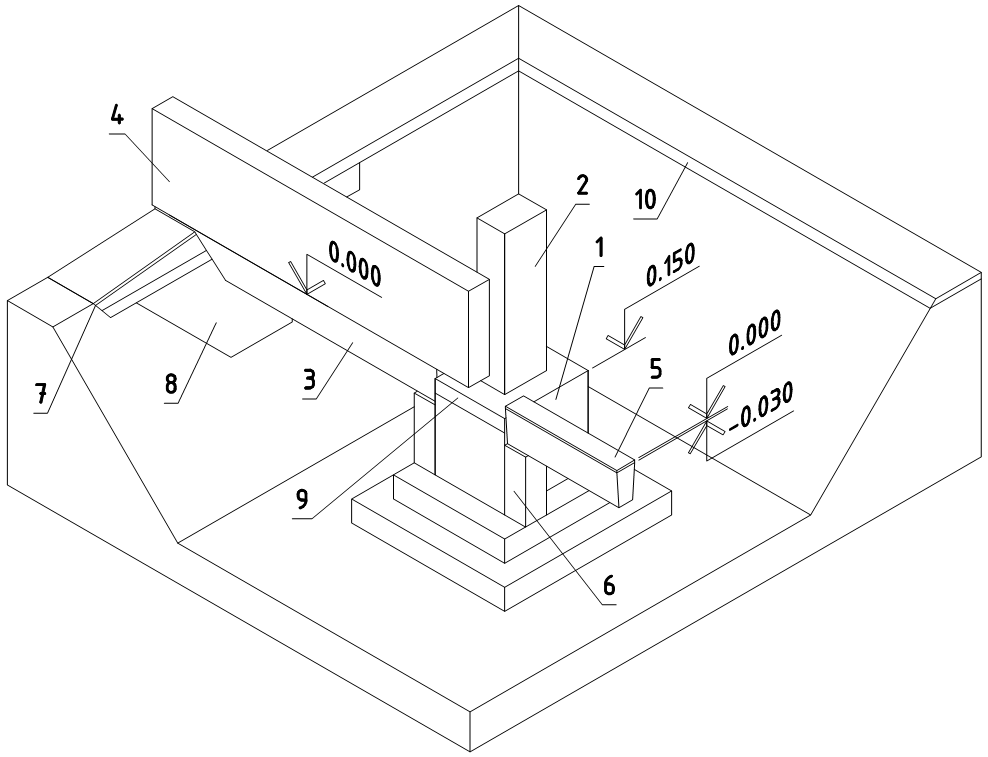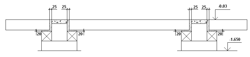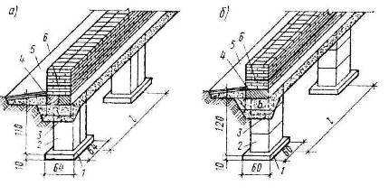 Столбики иногда называют приливами, их размеры в плане не менее 300×600 мм. Зазоры между торцами балок и подколонниками должны быть не менее 25 мм, их заполняют бетоном класса С8/10.