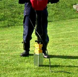 Для тяжелых и плотных суглинистых грунтов перед сверлением или забиванием деревянных опор почву приходится искусственно «размачивать». В этом случае пробивается отверстие на глубину в 30- 40 см и периодически заливается водой. Примерно через сутки можно сверлить скважину руками или забивать деревянные брусья в описанном выше порядке.