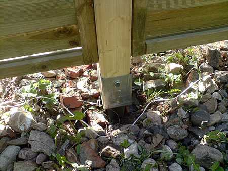 - Фиксация деревянных столбов с помощью засыпки скважины щебнем, бутом, битым кирпичом, гравийным отсевом;