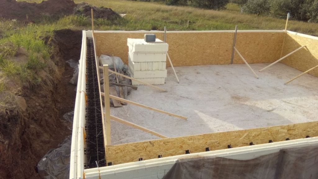 Можно еще при строительстве опалубки своими руками побеспокоиться об утеплении основания будущего дома.