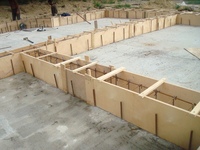 Зачастую опалубку из ОСБ устанавливают для заливки фундамента. Кроме того, ее используют при строительстве ограждений и построек хозяйственного предназначения, возводимых монолитным литьем.