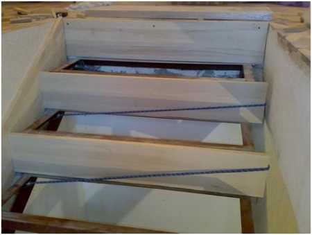 - Теперь можно крепить проступь. Если шурупы слишком выпирают, то нужно сделать под них подкладки, для увеличения площади опирания.