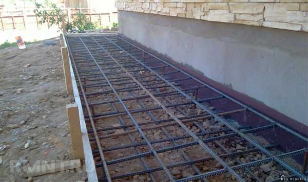 Таким образом, арматурная сетка не будет лежать на ней, а будет внутри бетонного слоя. Каждый последующий лист сетки должен укладываться на предыдущий внахлест примерно 10 см.