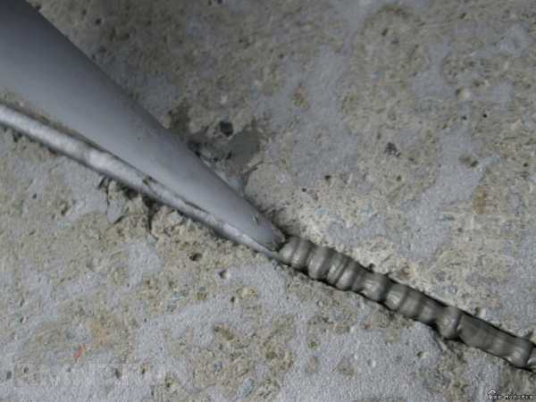 Сетку кладут ровно, иначе при заливании бетоном могут быть видны ее фрагменты. Также с помощью болгарки необходимо обрезать все торчащие концы либо загнуть их внутрь.
