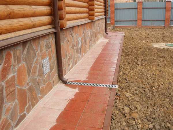 Что еще нужно учитывать — соблюдение уклонов. Снижение должно происходить от дома. Таким образом, вода будет сходить в грунт, находящийся вокруг или дренажную систему. Уровень уклона будет зависеть от варианта защитного покрытия, который используется. Для асфальта и бетона уклон составляет 3-6%. Во время укладки керамогранита, плитки, камня — уклон должен быть 6-12%.