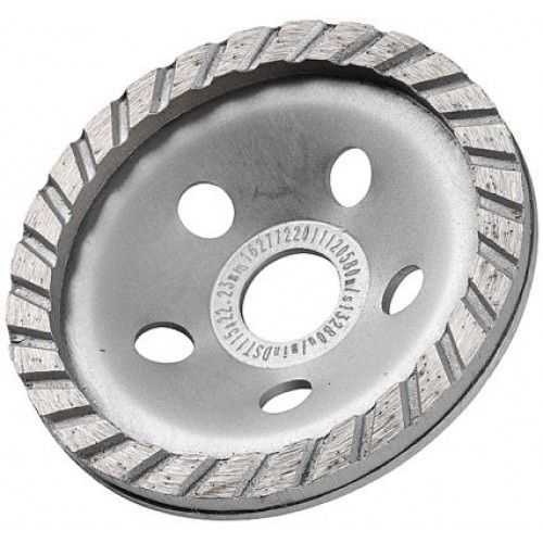 Алмазный расходник применяется для обдирки каменных, бетонных и похожих имея его материалов. Такая конструкция совершенно подходит для снятия маленьких участков бетонной стяжки.