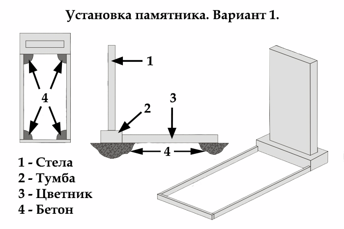 Существует много вариантов, как поставить памятник на кладбище, но наиболее простые для самостоятельного монтажа – на ритуальные плиты и на бетонную подушку.