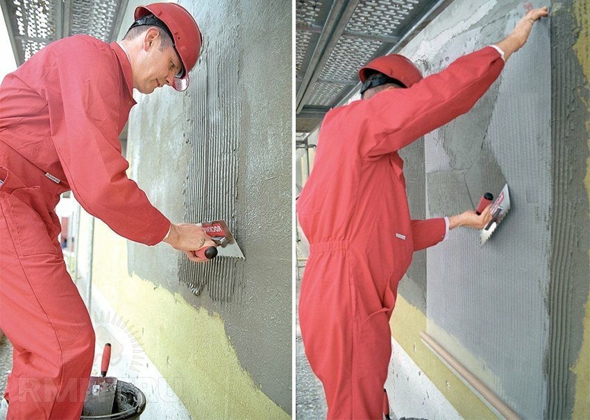 Дышащая штукатурка укладывается при помощи мастерка или ковша, для больших площадей можно применить кельму. Затирка производится при помощи терки.