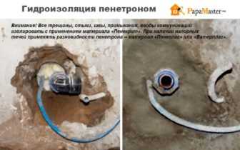 Внимание! Для гидроизоляции трещин, швов, стыков, сопряжений, примыканий, вводов коммуникаций используется шовный гидроизоляционный материал «Пенекрит», для остановки напорных течей – материалы «Пенеплаг» или «Ватерплаг» . Для гидроизоляции трещин с шириной раскрытия более 0,5 мм, швов, стыков, сопряжений, примыканий, вводов коммуникаций применяется Пенекрит в сочетании с Пенетроном.