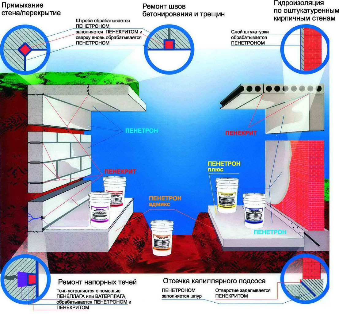 Принципов действия проникающей гидроизоляции четыре: