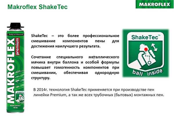 - Makroflex Shaketec – технические характеристики данного изделия позволяют применять его в любое время года.