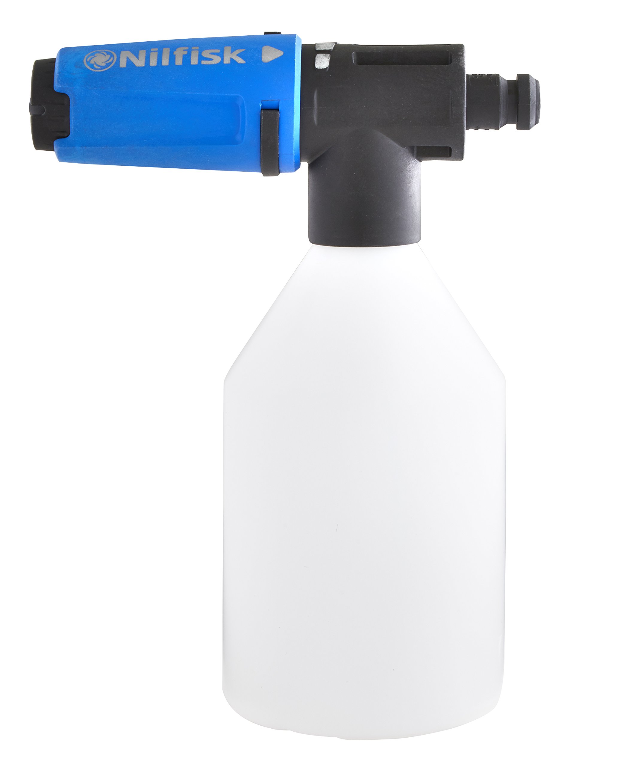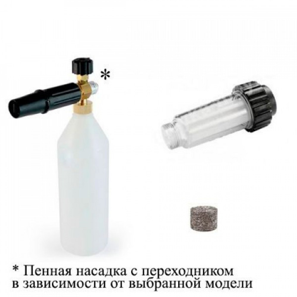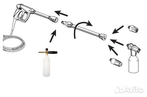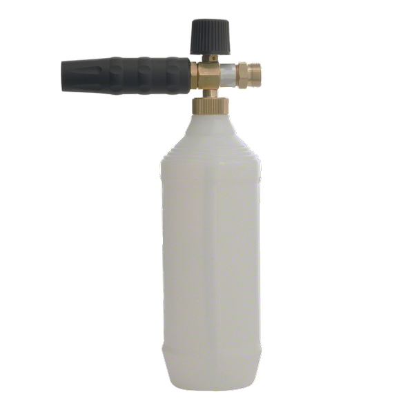 - Струя воды проходит через шампунь для автомобиля, подходящий для пеногенератора.