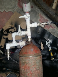 В качестве ёмкости для воды можно использовать не только садовый распылитель. Самым надежным вариантом станет баллон из-под пропана, так как он может выдержать высокое давление.