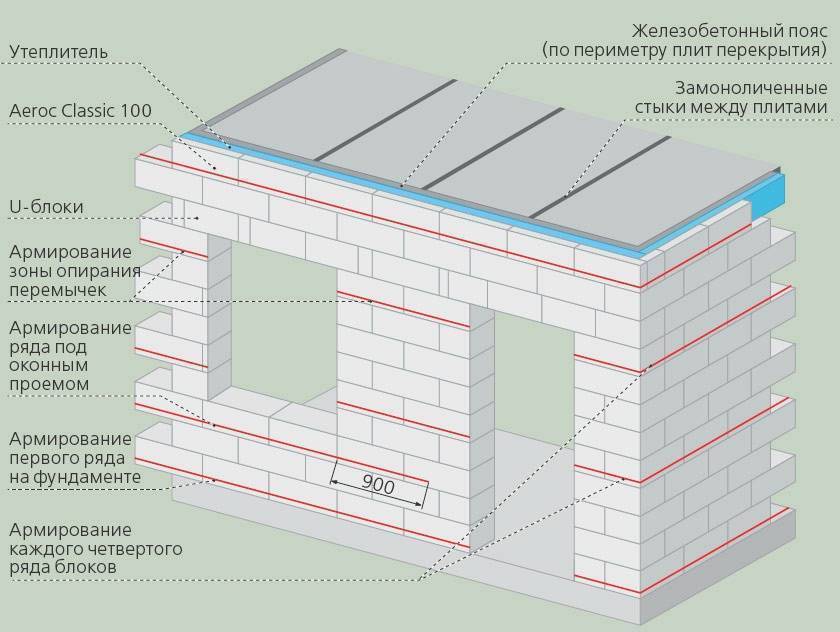 Как правильно сделать армированные перемычки в газобетонных стенах?