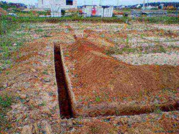 Для начала полностью снимают плодородный слой почвы, а затем приступают к выкапыванию траншей под ленту. Глубина траншей достигает от 30 до 70 сантиметров, а их ширина определяется в зависимости от того, каковы показатели сопротивления грунта. По всему наружному периметру будущего строения в траншеи под фундамент укладывают гофрированные трубы, монтируя смотровые колодцы. Обязательное условие – наличие уклона не менее 70 для обеспечения самотека в емкость, установленную на нижнем уровне и скрытую под слоем земли.