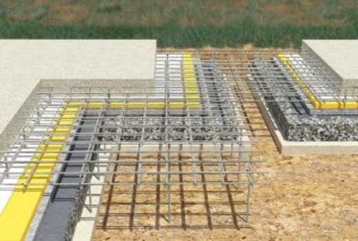 Кроме того фундамент, сооруженный по типу перевернутой чаши позволяет значительно снизить расходы на материал. Монолитная бетонная плита имеет толщину не более 20 сантиметров, что заметно сокращает количество требуемого бетона и арматуры. Нет необходимости тратить средства на дополнительную отделку, так как речь идет о готовых полах по грунту. Уложенный под плиту гидростеклоизолом выполнить функцию материала, ставшего надежной защитой от радона.