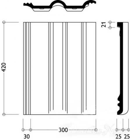 Укрепляющие ребра необходимы для противостояния расколов черепичного материала. Края ЦПЧ отличаются закругленной формой. Это обеспечивает стекание воды. Форма предусматривает наличие зацепов для крепления на обрешетку. Предусмотрено точечное соприкосновение между рейками и брусками.