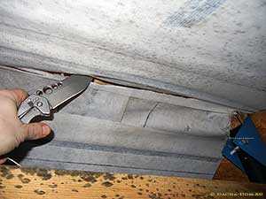 | Пример моей собственной ошибки с вентиляцией холодного чердака с вальмовой кровлей. Несмотря на наличие вентиляционных окон, влага все равно сквпливается «под куполом» вальмы и конденсируется на пленки и стропилах. Как следствие — рост плесени, даже несмотря на предварительную антисептическую обработку стропил. | Исправляем ошибку: прорезаем под коньком вентиляционные продухи в подкровельной гидроизоляции: сразу же ощутилось движение воздуха. Затем одеваем противогаз, перем распылитель и средство от плесени Неомид и обрабатываем всю кровлю с чердачной стороны. «Ну и работенка»- скажу я вам! Лучше было почитать литературу перед тем, как ставить крышу. | ||