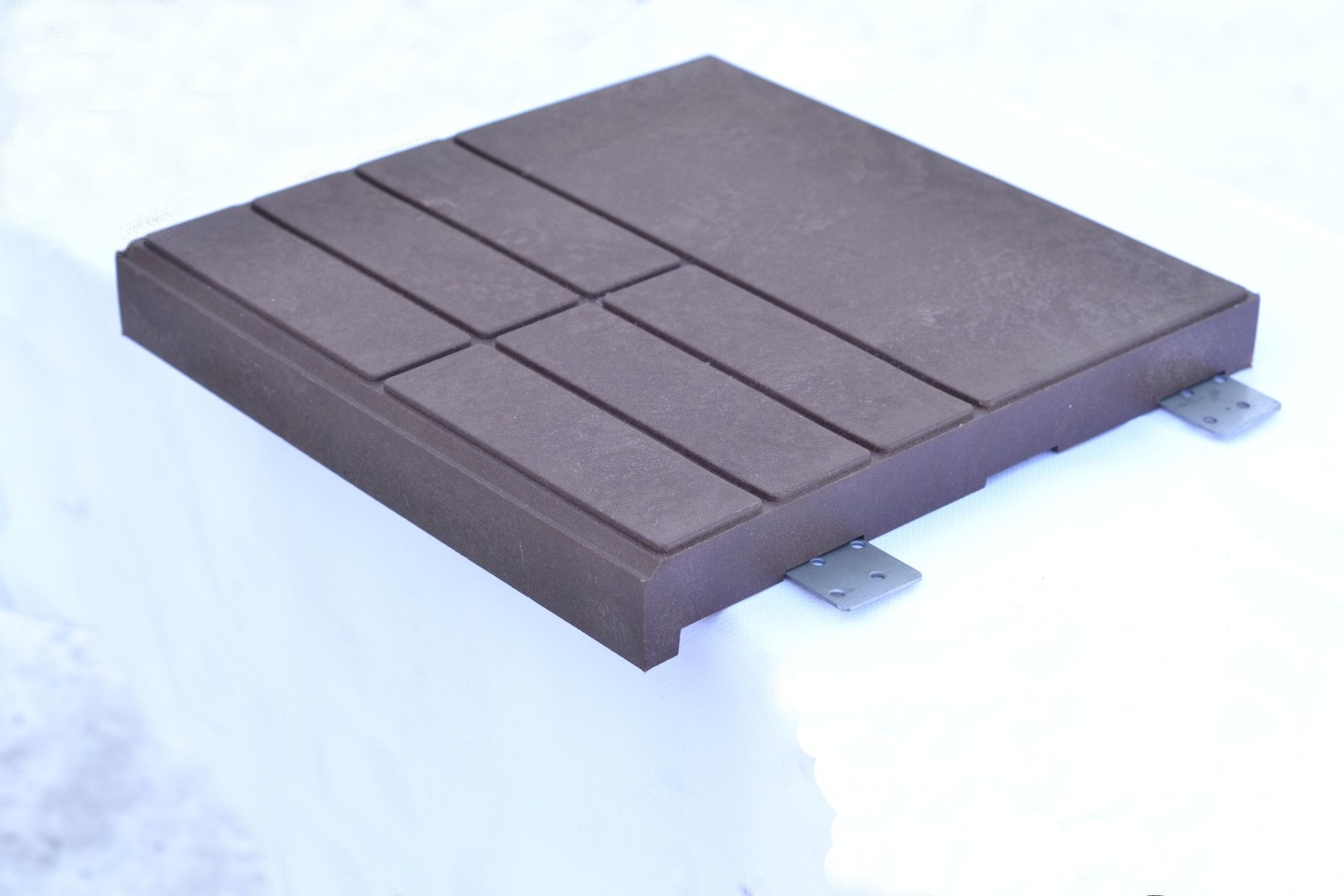 - Новый материал представляет собой окрашенный в массе, полимер- песчаный композит, который нагревается до высокой температуры и формируется под давлением в специальных формах.