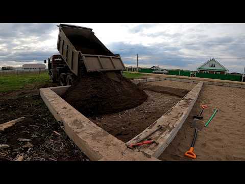 Укладка производится слоями по 5–6 см, которые утрамбовывают ручной трамбовкой или виброплитой. Трамбовать надо очень тщательно, чтобы основание для будущего строения было плотным.