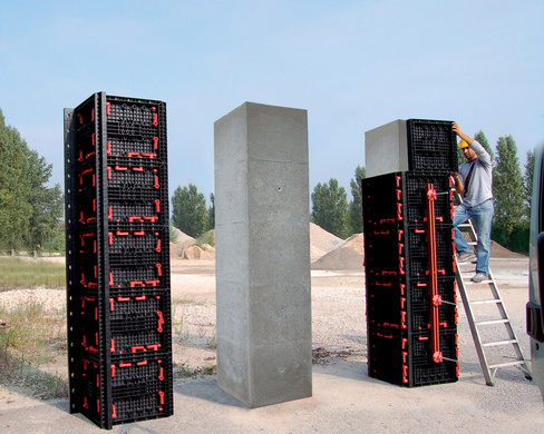 Удобные панели опалубочной системы плотно охватывают железобетонный объект, позволяя изделию приобрести заданную форму.