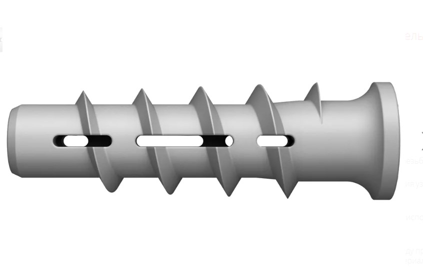 Этот материал плохо переносит низкие температуры, он становится хрупким и не может использоваться для наружных работ. Широкое распространение получили винтовые модели, оснащенные развитой нарезкой по внешней части корпуса. Она удобна тем, что позволяет уплотнить дюбель в гнезде еще с момента установки. При завинчивании шурупа исключается проворачивание корпуса, процесс монтажа не дает сбоев.