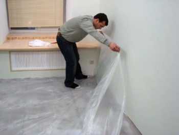 - На следующее утро нужно проверить, не стала ли пленка влажной. Если она сухая, гидроизоляция здесь будет оправдана. Если нет, то стоит тщательно просушить полы перед укладкой.