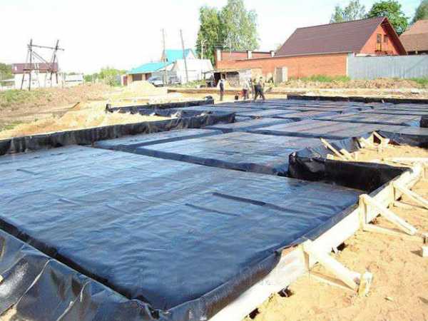 - Гидроизоляция. Ее установка необходима, поскольку бетон прекрасно впитывает влагу и при промерзании его могут образоваться трещины.