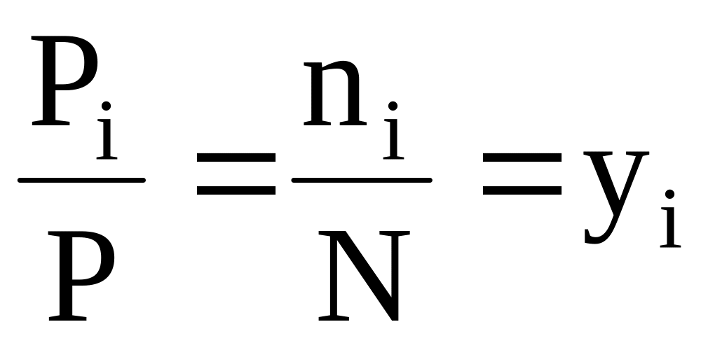 • Мольная доля — отношение количества вещества данного газа к общему количеству вещества смеси газов, измеряется в долях единицы или в процентах.