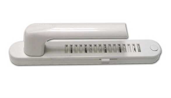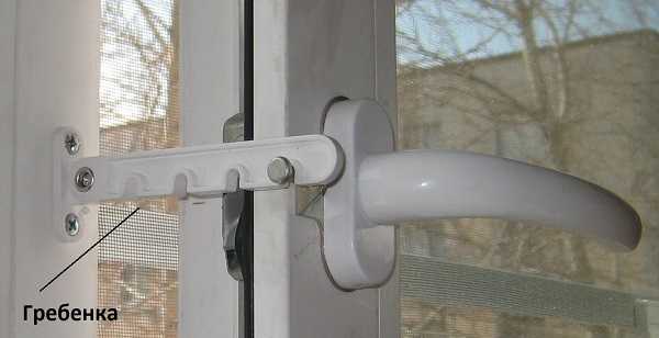 Гребенку можно купить в строительном магазинеЭто дополнительная фурнитура, которая ограничивает угол наклона створки. Наклон выбирается ступенчато до 60 градусов. В качестве ограничителя используется зацеп, который монтируется на раму.