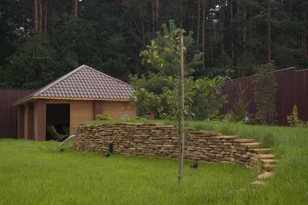 Подпорная стенка может быть выполнена из самых разных материалов. Например, из бетона, бревен или кирпича. Но наиболее интересным решением, органично вписывающимся в любой загородный ландшафт, является сооружение подпорной стенки из камня.