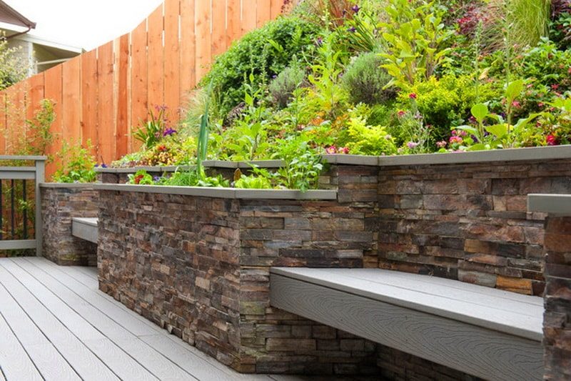 Строительный материал для подпорной стенки выбирают в зависимости от планируемой высоты и выполняемых ею функций. Общий дизайн участка, конечно, также имеет значение.