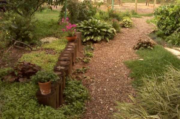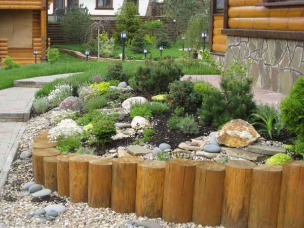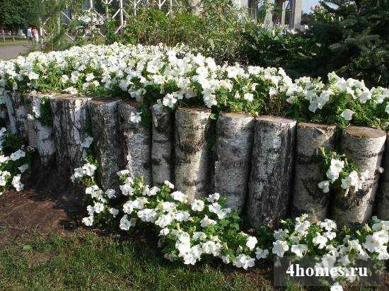 Хорошо смотрятся стенки из кругляка, импрегнированного под давлением. Можно купить бревна либо готовые пролеты из соединенных проволокой или металлической лентой бревен. Их можно просто вкопать в землю.