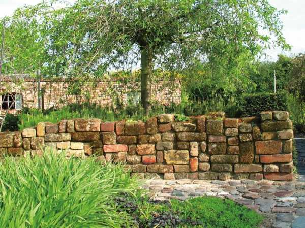 Стенки могут быть сделаны из кирпича, разных видов природного камня или бетона, покрытого штукатуркой, — выбранный материал и конструкция должны прежде всего подходить по стилю к дому и саду. Чтобы конструкция была надежной, и простые прямоугольные кирпичи, и природные камни неправильной формы соединяются в кладке в определенном порядке — так, чтобы нагрузка распределялась равномерно.
