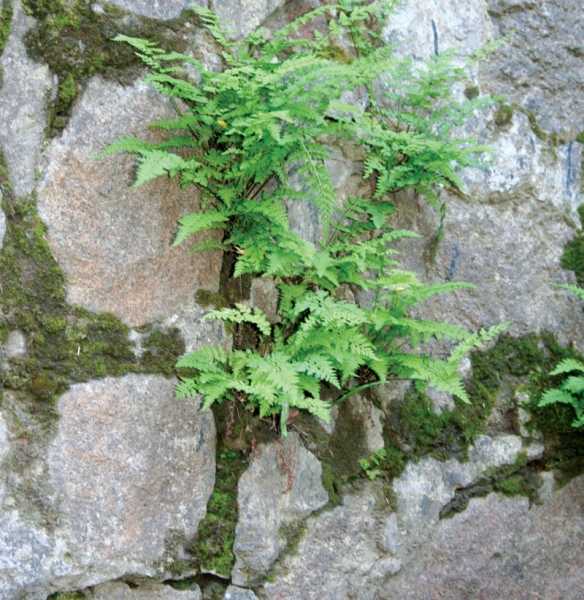 Классические «обитатели» стенок — колокольчики и папоротник.
