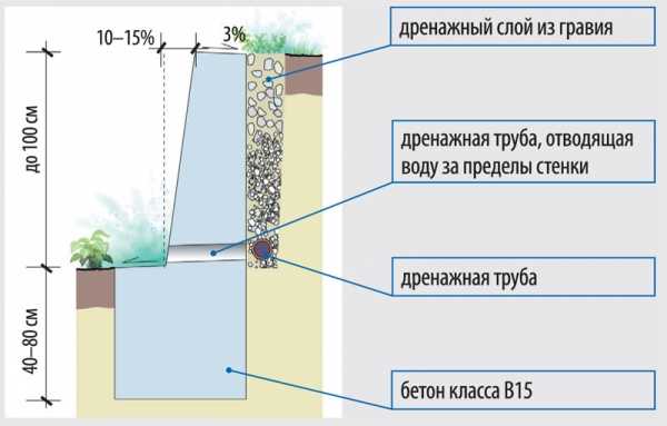 - Заднюю грань стенки необходимо делать под небольшим уклоном к удерживаемой почве