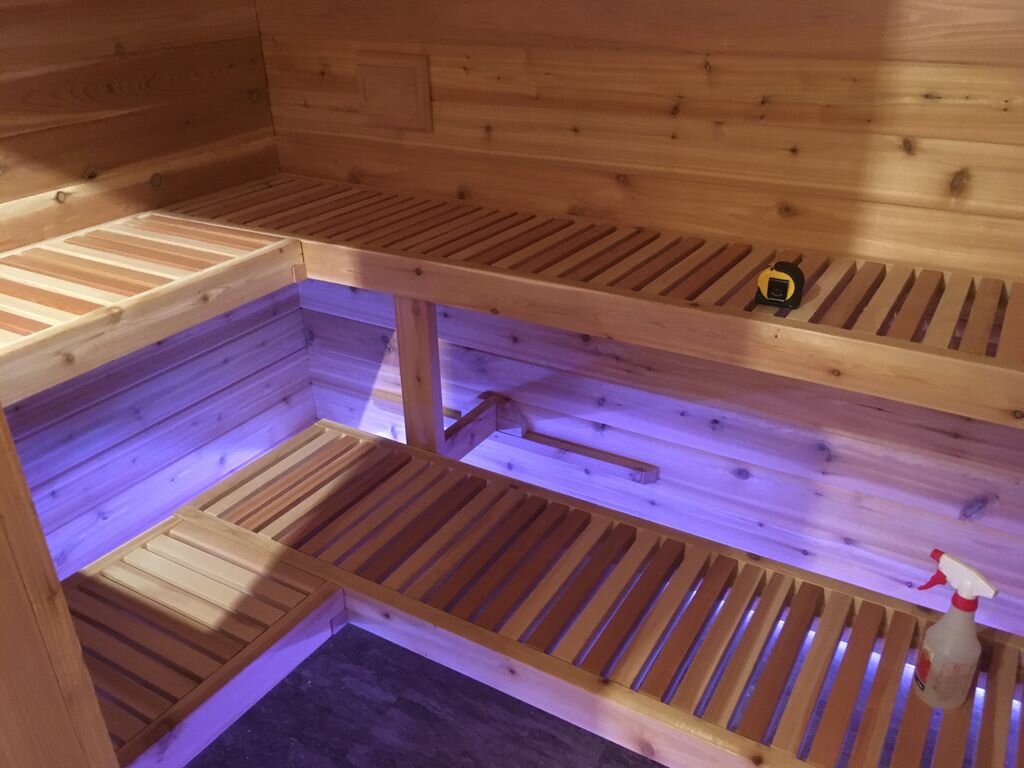Чтобы в компактную парную поместить большую семью, выстраивают П-образный полок. Две стороны имеют скамьи в несколько уровней, а третья составляет отдельное ложе.