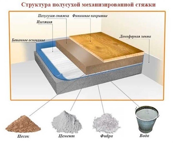 От традиционной стяжки полусухая отличается использованием гораздо меньшего количества воды.