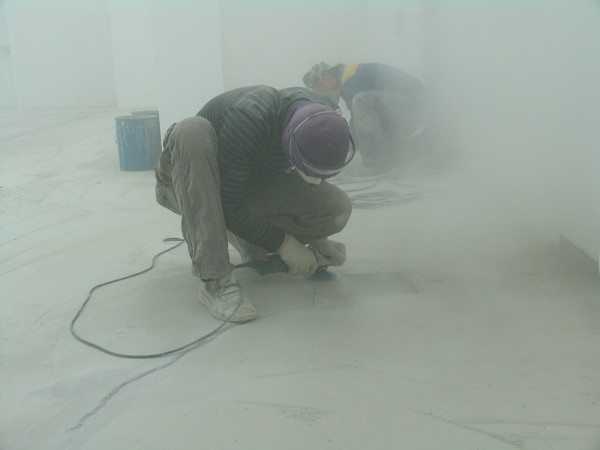 Сухое шлифование поднимает в воздух большое количество цементной пыли