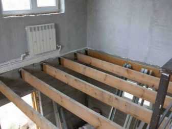ΠΡΠ»ΠΈ Π² Π΄ΠΎΠΌΠ΅ Π½Π΅Ρ ΠΏΠΎΠ΄Π²Π°Π»ΡΠ½ΠΎΠ³ΠΎ ΠΏΠΎΠΌΠ΅ΡΠ΅Π½ΠΈΡ, ΡΠΎ Π½Π°ΠΈΠ±ΠΎΠ»Π΅Π΅ Π±ΡΠ΄ΠΆΠ΅ΡΠ½ΡΠΌ ΠΈ ΠΌΠ΅Π½Π΅Π΅ ΡΠ»ΠΎΠΆΠ½ΡΠΌ Π² ΠΈΡΠΏΠΎΠ»Π½Π΅Π½ΠΈΠΈ ΡΠ²Π»ΡΠ΅ΡΡΡ ΡΡΡΡΠΎΠΉΡΡΠ²ΠΎ ΠΏΠΎΠ»Π° ΠΏΠ΅ΡΠ²ΠΎΠ³ΠΎ ΡΡΠ°ΠΆΠ° ΠΏΠΎ Π³ΡΡΠ½ΡΡ. ΠΡΠΈ ΡΡΠΎΠΌ Π²ΠΎΠ·ΠΌΠΎΠΆΠ½Ρ Π΄Π²Π° Π²Π°ΡΠΈΠ°Π½ΡΠ°: Π»ΠΈΠ±ΠΎ ΠΈΡΠΏΠΎΠ»ΡΠ·ΡΡΡ Π±Π΅ΡΠΎΠ½Π½ΠΎΠ΅ ΠΎΡΠ½ΠΎΠ²Π°Π½ΠΈΠ΅ (ΡΠ°ΠΊ Π½Π°Π·ΡΠ²Π°Π΅ΠΌΡΡ ΡΡΡΠΆΠΊΡ), Π»ΠΈΠ±ΠΎ ΠΌΠΎΠ½ΡΠΈΡΡΡΡ ΠΌΠ½ΠΎΠ³ΠΎΡΠ»ΠΎΠΉΠ½ΡΠ΅ Π΄Π΅ΡΠ΅Π²ΡΠ½Π½ΡΠ΅ ΠΏΠΎΠ»Ρ Π½Π° Π»Π°Π³Π°Ρ .