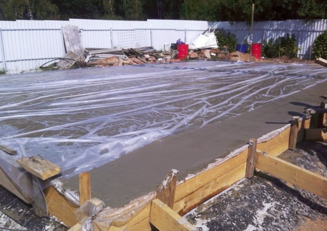 Что бы снизить скорость испарения влажности, необходимо защищать фундамент от попадания прямых солнечных лучей, путем накрытия пленкой.