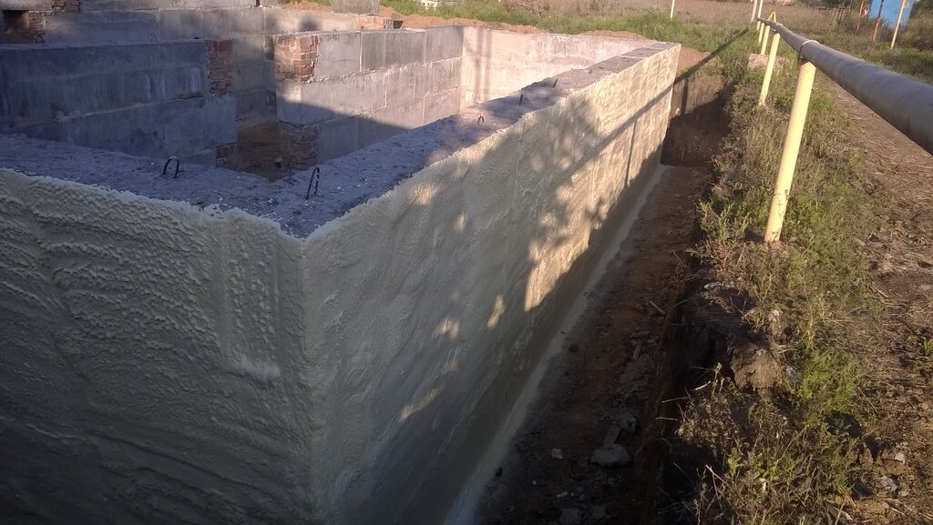 Нанесение битумного покрытия на фундамент является стандартной практикой.Это покрытие служит для гидроизоляции фундамента, чтобы предотвратить поглощение воды бетоном.