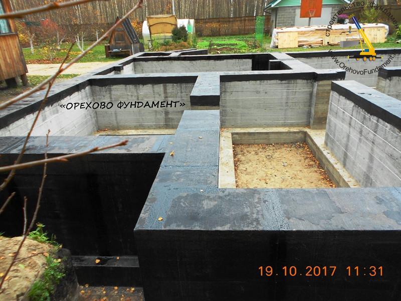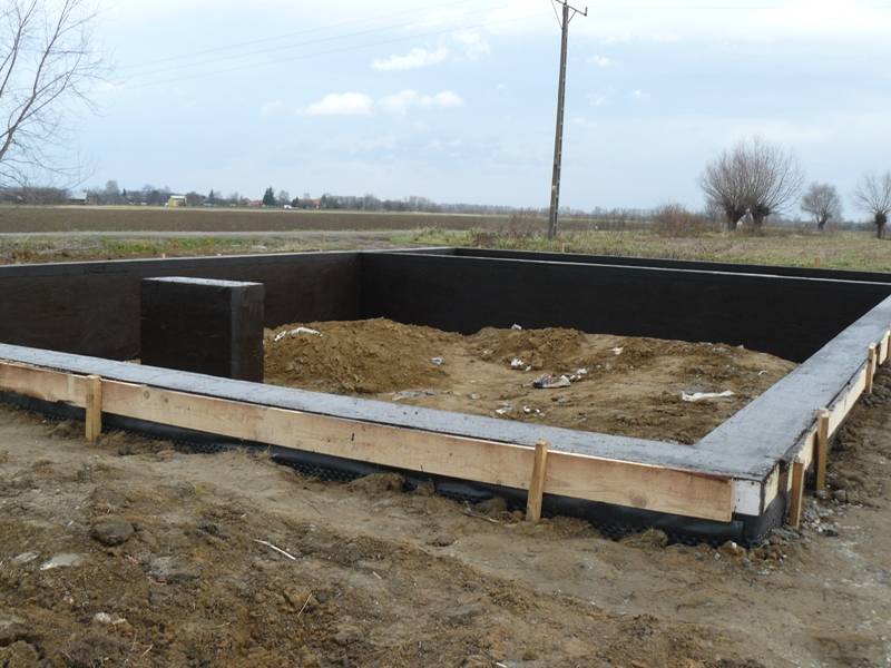 гидроизолированная по горизонтали и вертикали лента ж/б фундамента