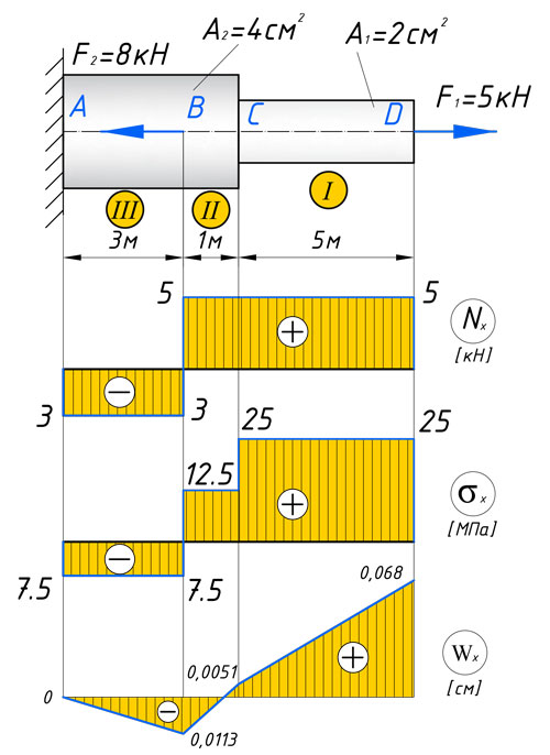 Характерными называются сечения стержня где: 1) приложены внешниепродольные силы; 2) происходит ступенчатое, или начинается участок