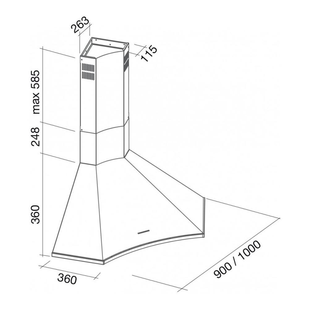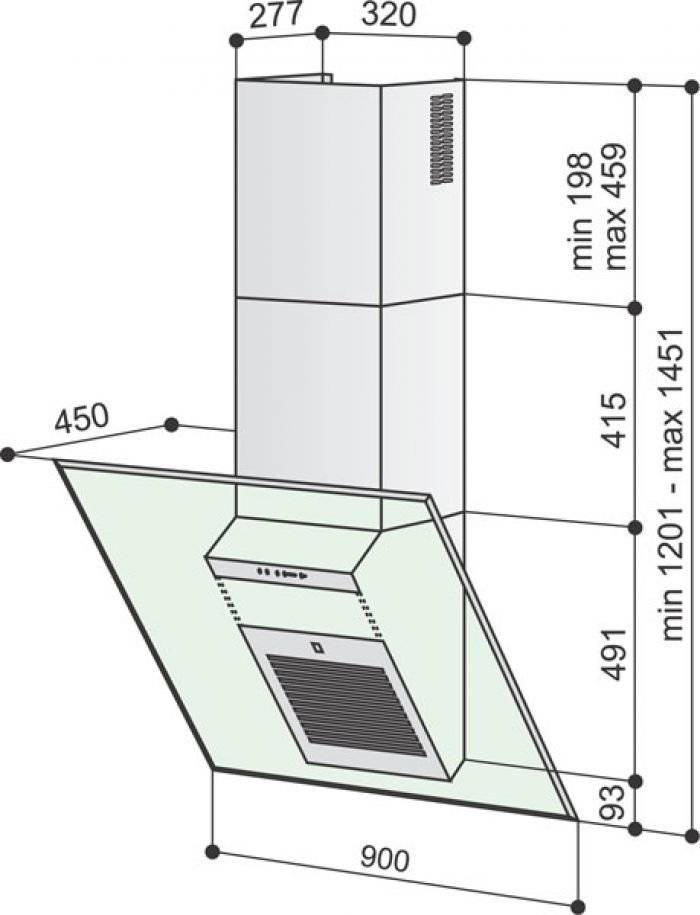 Вертикальный вид предполагает наклонное размещение прямоугольного вытяжного устройства.