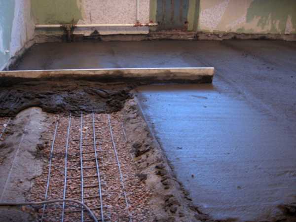 - Укладывается армирующая сетка и заливается черновая стяжка слоем в 5 см.