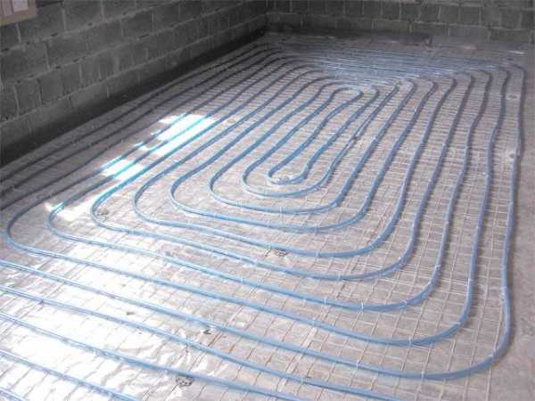 При устройстве бетонного покрытия в частном доме эффективным утеплением станет монтаж водяного или электрического пола. Он выполняется при изготовлении основания с нуля или под него разрушают готовую стяжку. Трубы для циркуляции воды или нагревательный кабель укладываются на утеплитель.