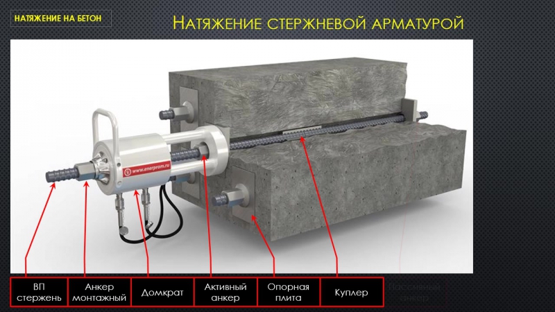 Это проволока или пряди, натянутые между концевыми креплениями. После этого процесса натяжения выполняется заливка бетона.