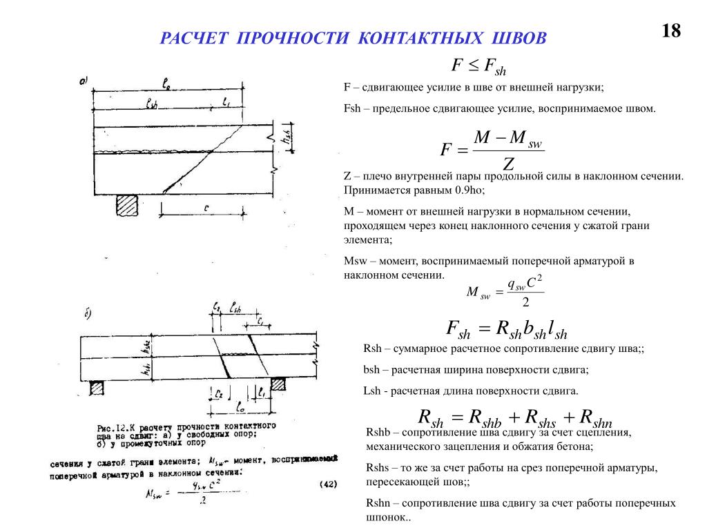 Если корреляция между прочностью на изгиб и прочностью на сжатие была установлена в лаборатории, прочность сердечника по ASTM C 42 может быть использована для прочности на сжатие для проверки на соответствие требуемому значению с использованием критериев ACI 318: 85 процентов от указанной прочности для среднего три ядра. Выпиливать балки из плиты для испытаний на изгиб нецелесообразно. Распиловка балок значительно снизит измеренную прочность на изгиб, и этого делать не следует. В некоторых случаях прочность сердечников на разрыв при раскалывании по ASTM C 496 используется, но опыт применения данных ограничен.