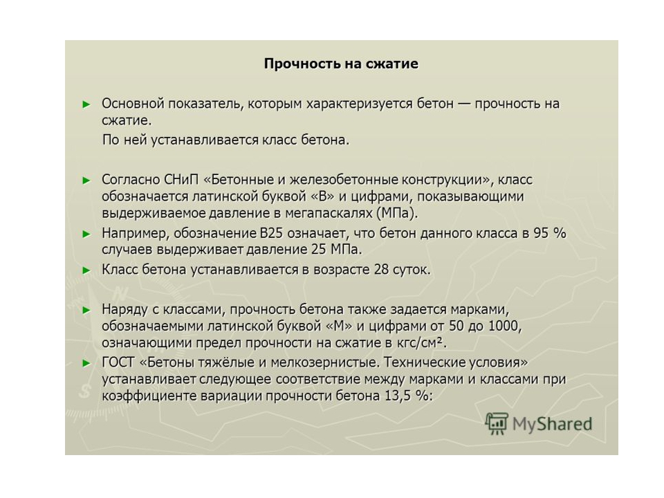 Прочность на сжатие — одно из важнейших инженерных свойств бетона, о котором заботятся проектировщики. Стандартной производственной практикой является классификация бетона по маркам. Этот класс — не что иное, как прочность на сжатие бетонного куба или цилиндра. Образцы куба или цилиндра обычно испытываются на машине для испытаний на сжатие, чтобы определить прочность бетона на сжатие. Реквизиты теста различаются от страны к стране в зависимости от кода дизайна.Согласно индийским нормам, прочность бетона на сжатие определяется как